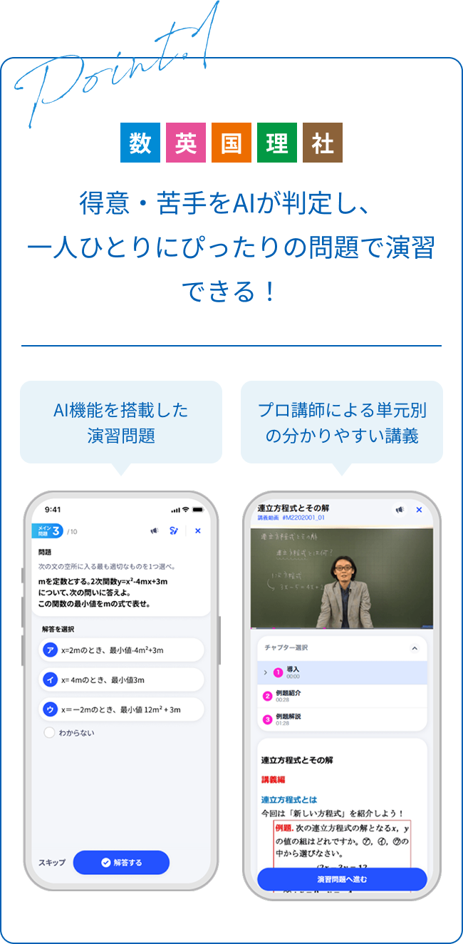 受験対策もテスト対策もAIが一人ひとりに最適な問題を出題!