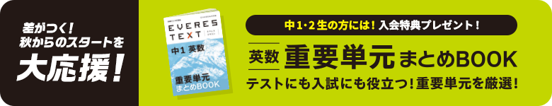 難関高校受験に向けた応用問題こそ先生にじっくり教えてほしいもの。〈エベレス〉なら、難関高校合格には解けなくてはならない難問の“解法テクニック”を、精鋭ぞろいの講師陣がライブ授業で教えます。難関高校合格に向けてライバルに差をつけたい方には、〈エベレス〉も合わせてご受講いただくことをお勧めします。
