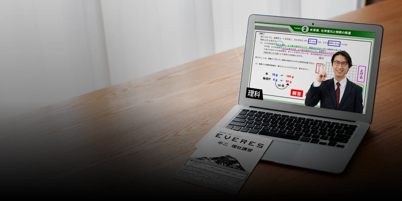 独自のカリキュラムで、難関校合格を目指すことができます。「理社講習」は、 EVERESの中学2年生向け特化型講習です。